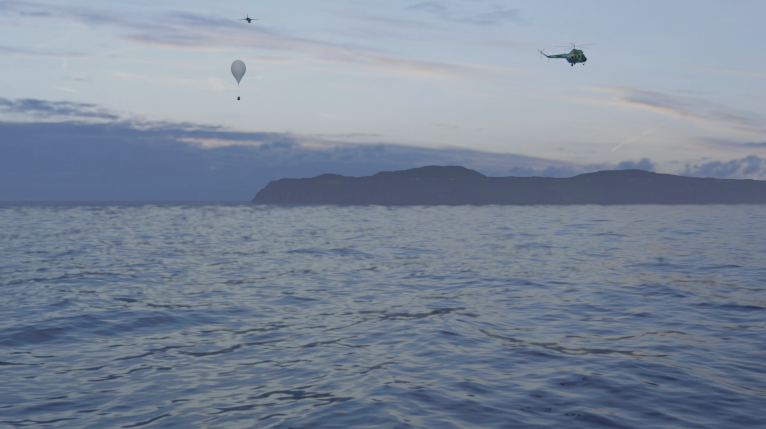 날씨가 흐리고 날이 어두워지는 시간대의 선박, 헬기를 담은 모습입니다.